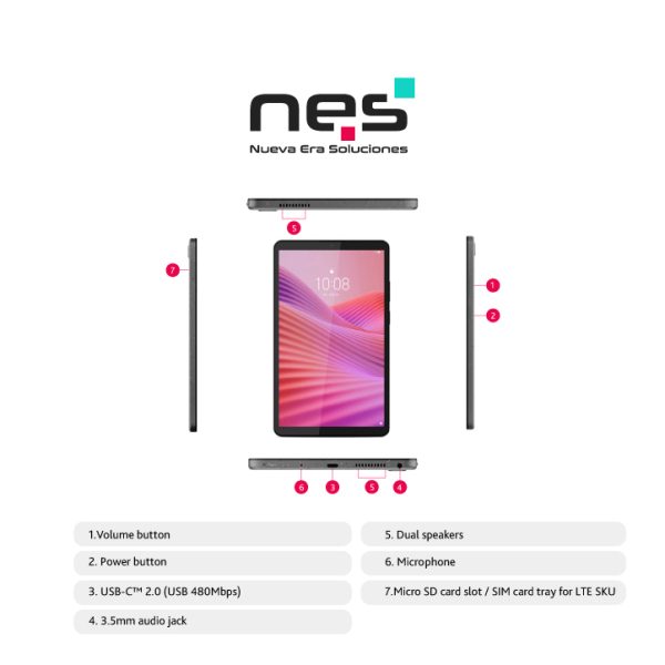 TABLET LENOVO TAB ONE TB305FU PANTALLA 8,7 PULGADAS CONECTIVIDAD SOLO WIFI MEMORIA 4GB + ALMACENAMIENTO 128GB COLOR GIRS quantity
